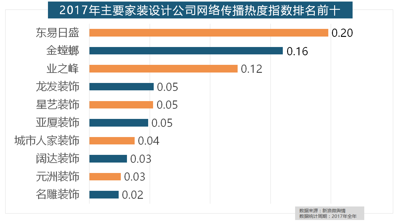 据新浪微舆情大数据阐发显示,金螳螂、业之峰、龙发粉饰、星艺粉饰紧随其后。但正在2017年所受关心无限,